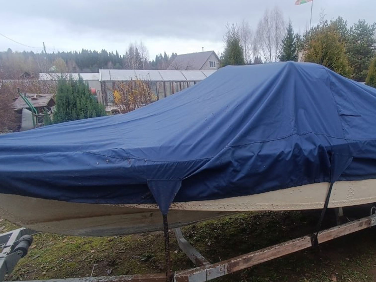 Транспортировочный тент для лодки с рулем и стеклом Амур М